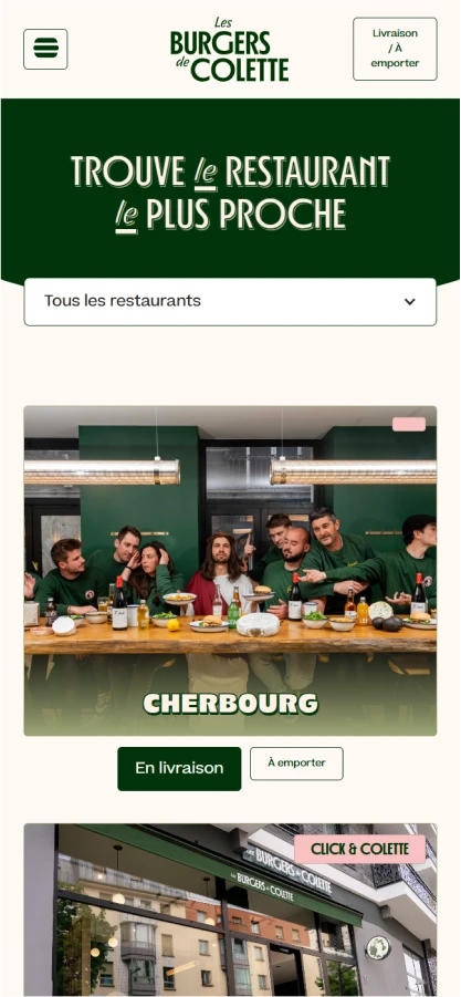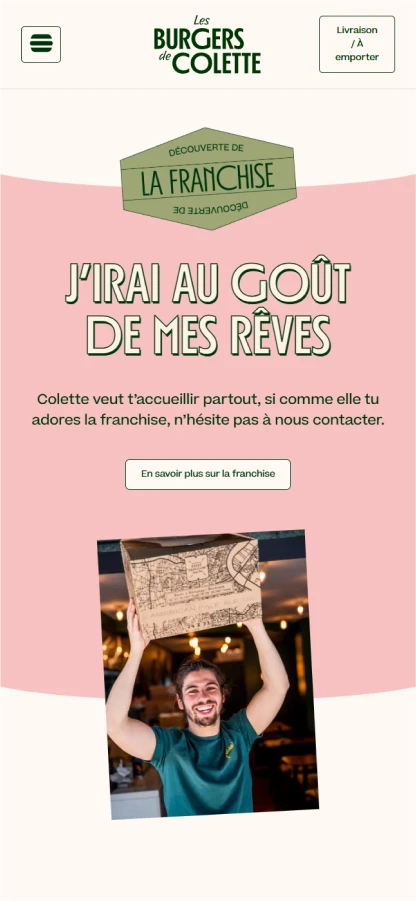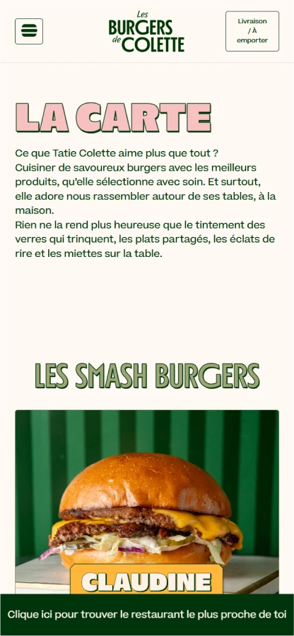 Insuffler l’identité de marque dans l’interface : rendre visible l’univers « Tatie Colette », la convivialité, l’originalité des burgers et l’esprit « maison ».